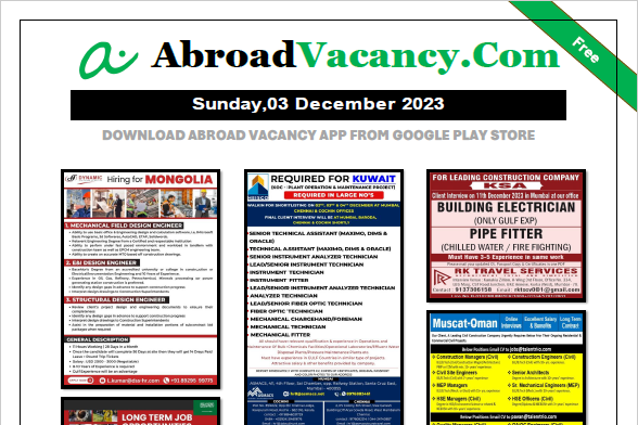 Download Pdf Paper, job vacancies for Bulgaria, Hungary, Russia and all Gulf countries Vacancy in large no. please download pdf paper of gulf job vacancy …