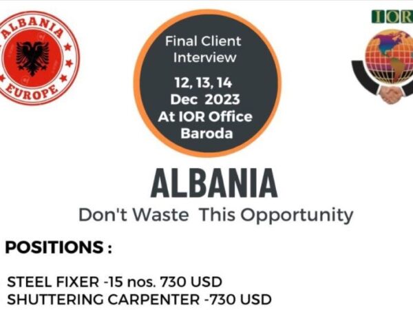 Albania Europe job vacancy for Indian job seeker in International overseas resources office client interview at Baroda office.