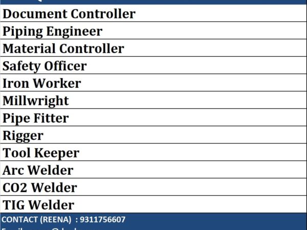 Iraq job vacancy for Korean company in dynamic staffing services office interview in Mumbai for document controller piping engineer material controller safety officer iron worker …