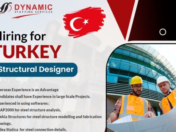 Turkey Free Requirement Job for Structural Designer in Dynamic staffing services office Salary 1500-2000 USD please send your cv to sahil@dss-hr.com