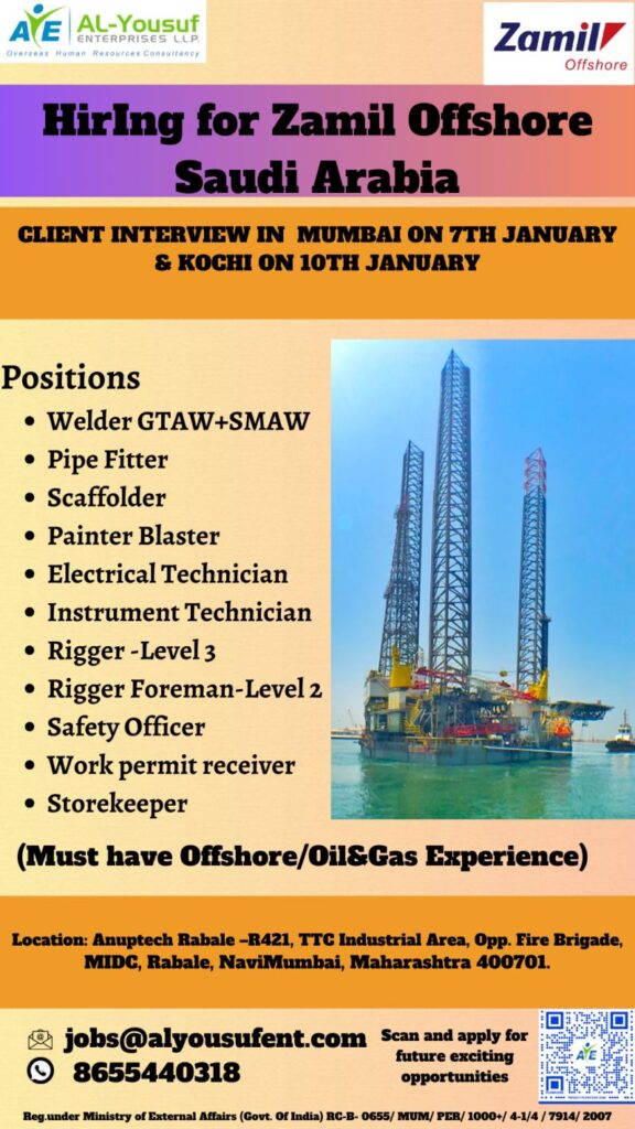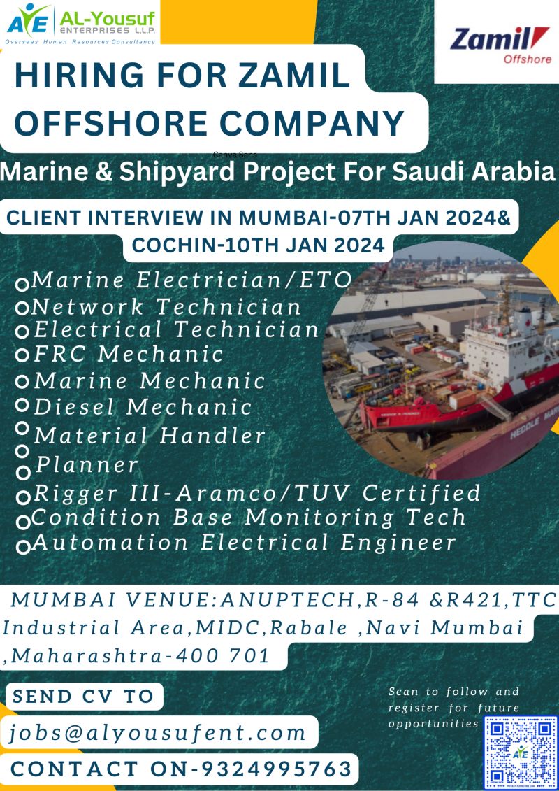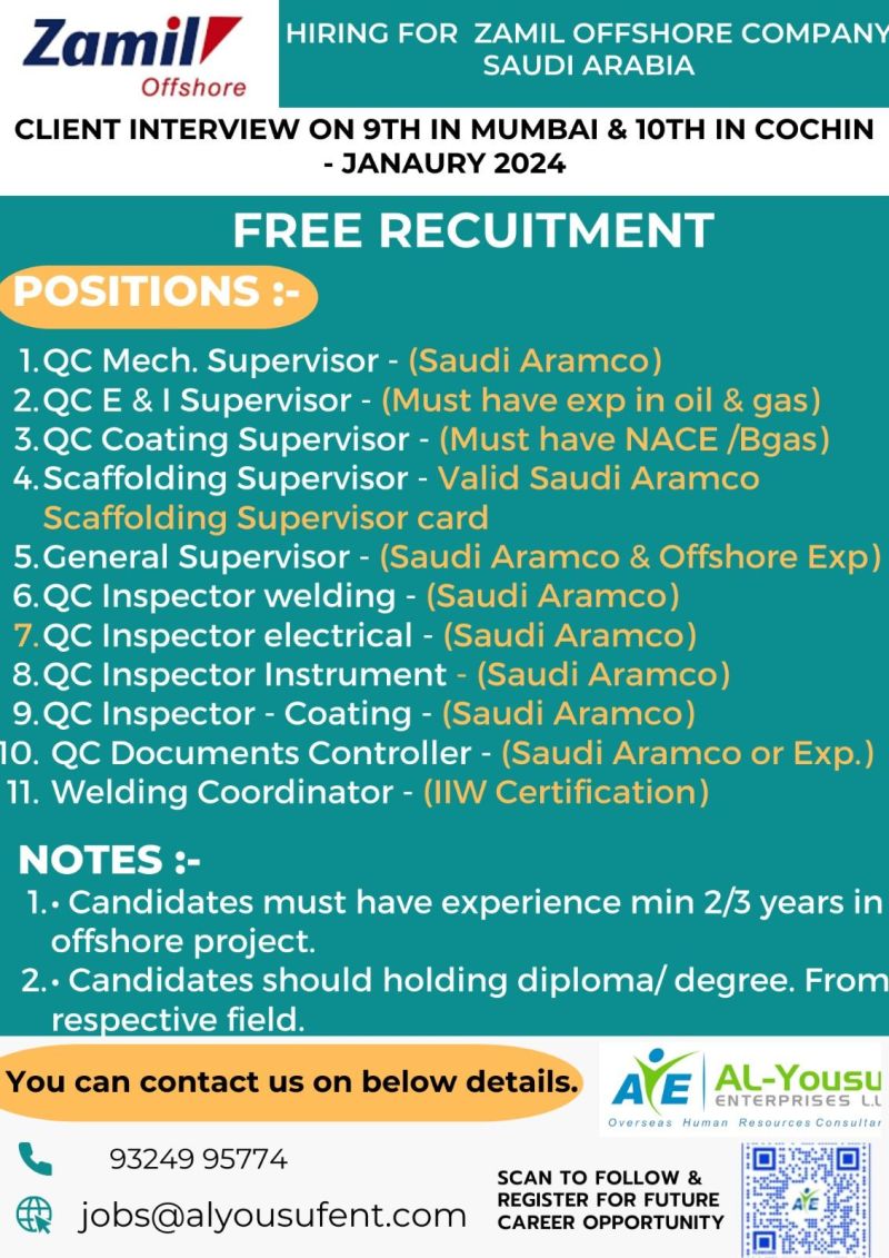 Free Requirement for Zamil offshore Company Saudi Arabia for Qc mech engineer supervisor welding inspector Qc document controller.