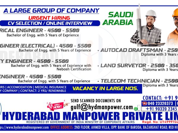 Urgent Hiring for A Large Group of Company in SAUDI ARABIA