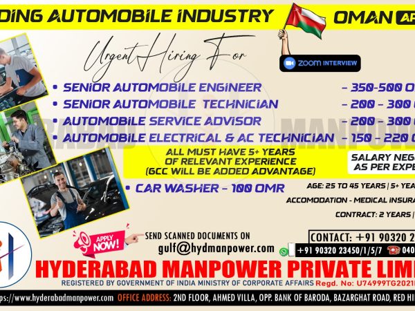 Urgent Hiring for A Leading AutoMobile Industry in OMAN