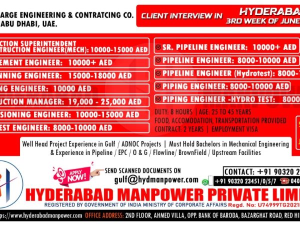 Well Head Experience in Gulf / ADNOC Project / Must have Degree in Mechanical Engineering and Experience in Pipeline / EPC / Oil and Gas …