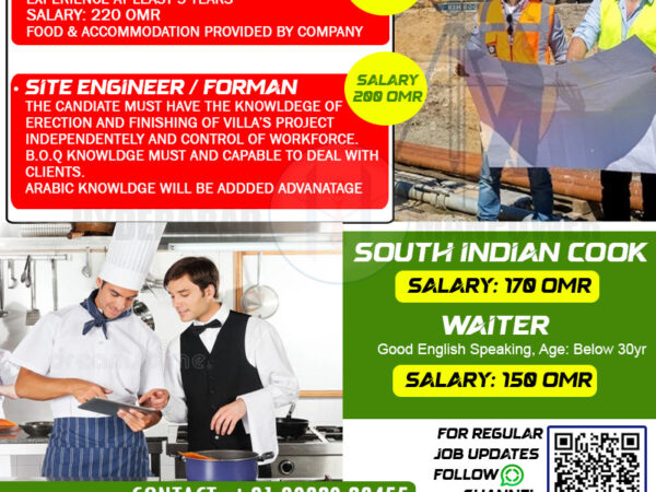 Must have Knowledge of Erection and Finishing of Villa’s Project Independently and Control of Workforce