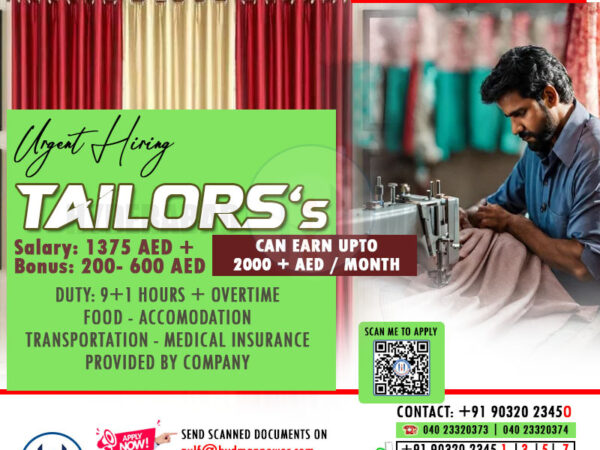 Must have Experience in Tailoring Free Food, Accommodation, Transportation & Medical