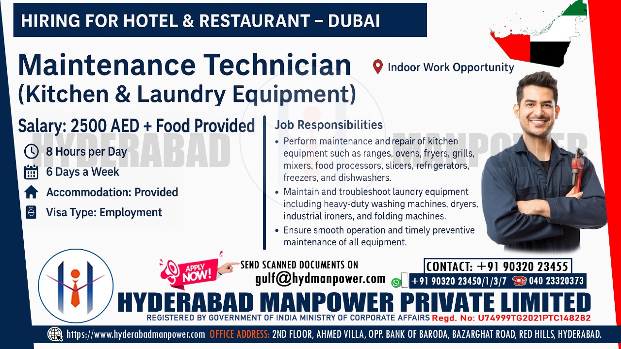 Gulf JobUrgent Hiring for A Lading Hotel and Restaurant – DUBAI Must have Experience in Maintenance and as mentioned in the Requirement Apply Now Share
