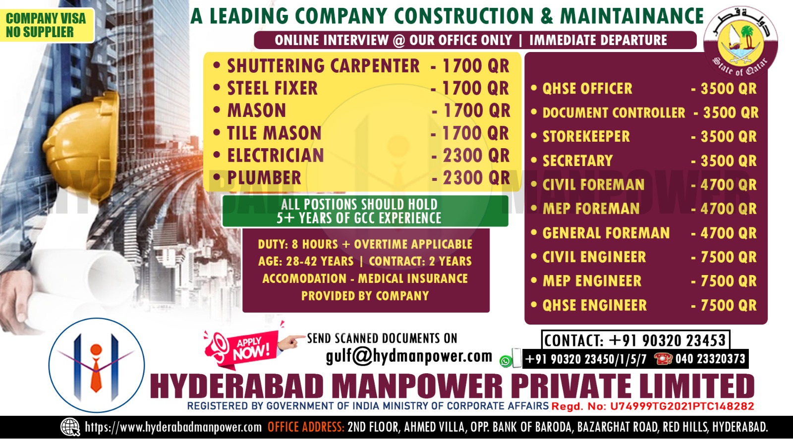 All Positions should hold Experience 5+ years in GCC