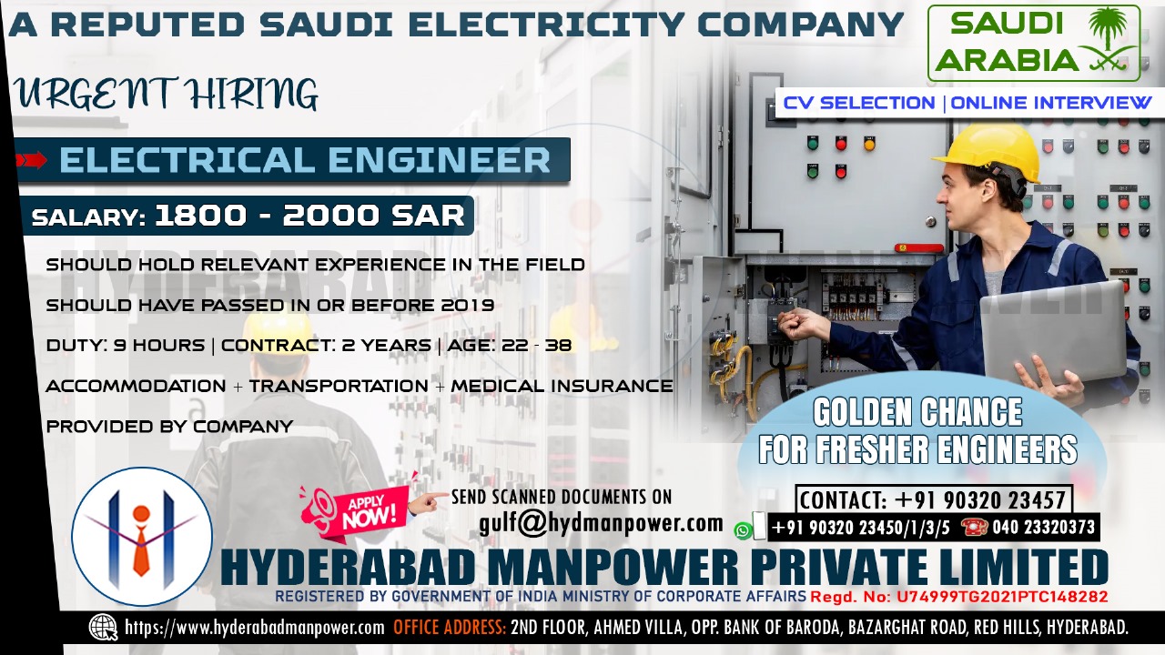 Urgent Hiring for A Reputed Saudi Arabia Electricity Company