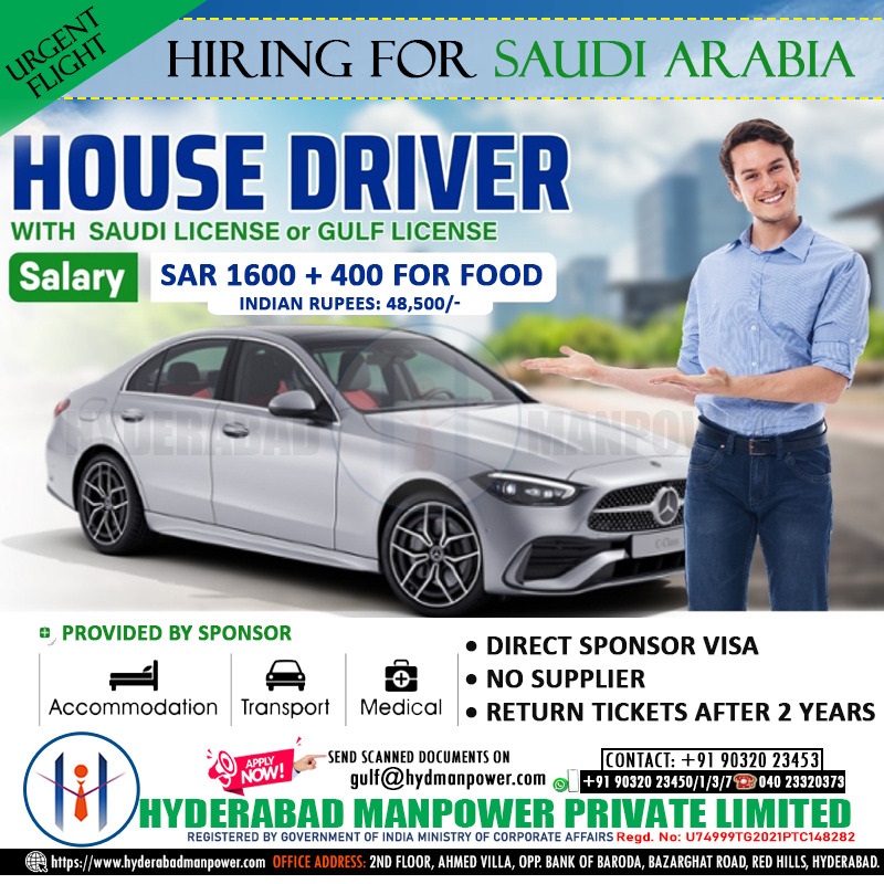 Urgent Hiring for Reputed House in Saudi Arabia