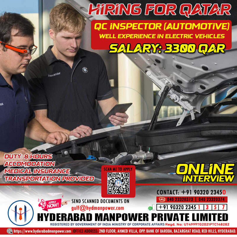 Gulf JobUrgent Hiring QC Inspector For A Leading Company in Qatar Well Experience in Electric Vehicles Share