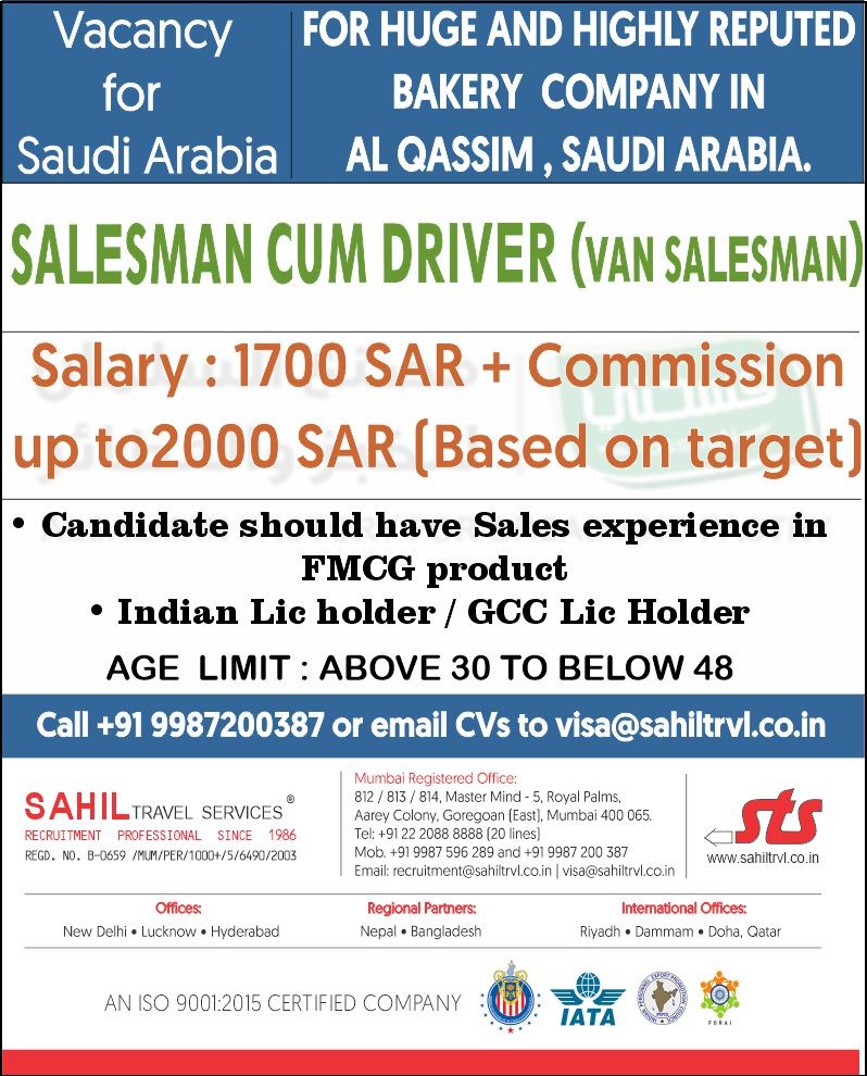 SALESMAN CUM DRIVER (VAN SALESMAN)